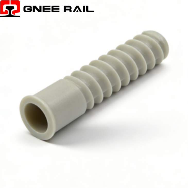 Mae hoelbren plastig rheilen, a elwir hefyd yn llawes blastig rheilen, yn wrthbarti o bigyn sgriw. Rhaid iddo gael ei fewnosod ymlaen llaw yn y peiriant cysgu concrit neu bren a'i osod ynghyd âpigau sgriwi gau'r traciau rheilffordd. Prif ddeunyddiau hoelbren plastig rheilffordd GNEE yw PA66 a HDPE.